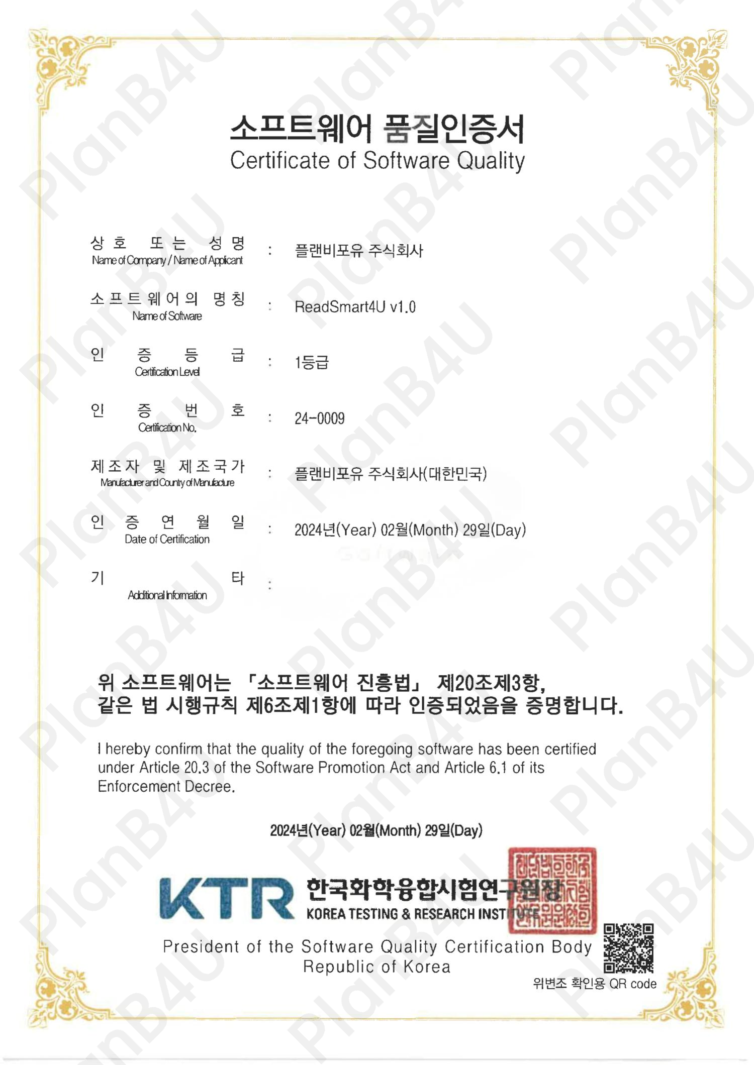 PLANB4U가 획득한 공식 인증 현황입니다.