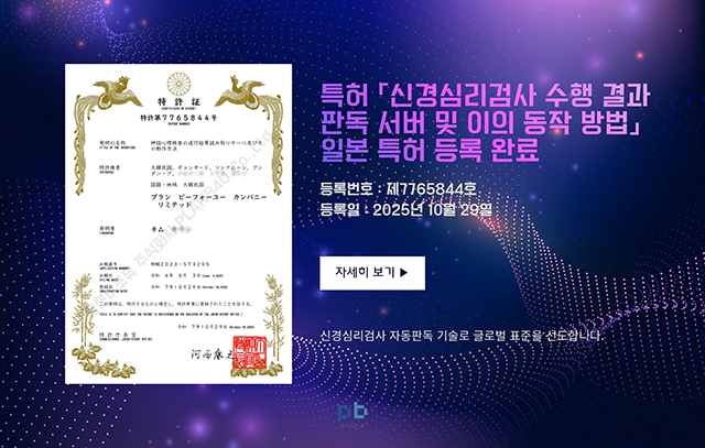 - [공지] 플랜비포유, 「신경심리검사 수행 결과 판독 서비스 및 이의 동작 방법」첫 해외 특허(일본) 등록 완료!new. November 2025